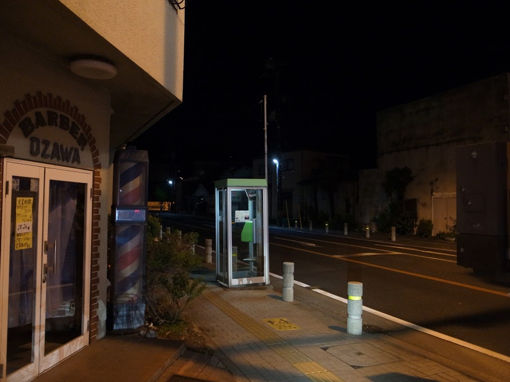 例の床屋の角にポツンとある公衆電話を通過。これに反応するのは昭和世代だぞ。