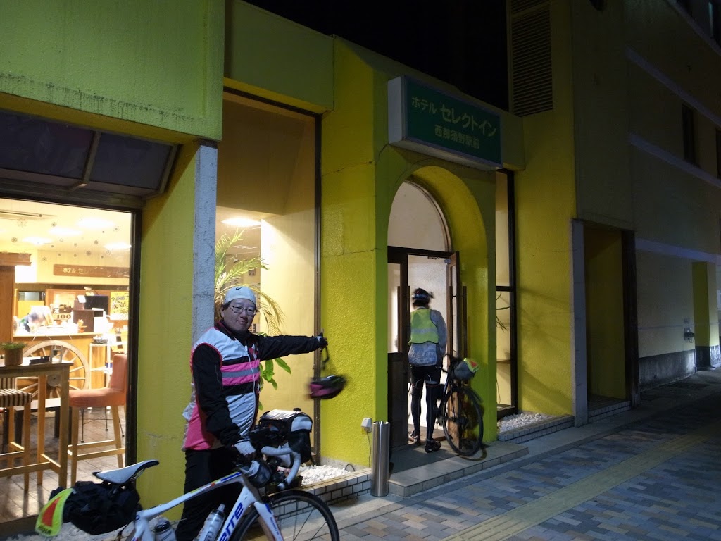 仮眠は矢板のPCを通過してからになるはずで、矢板もしくは西那須野の二択だろうか。今回の事前認定部隊は三人揃って西那須野駅前のセレクトイン。自分は去年のたまがわ600でもこのセレクトインを使った。ロビーに自転車を持ち込み可だったし、今年はルート上にあるということもあり、迷わずここを予約した。340km地点になるので距離的にもちょうどいい。西那須野は他にもホテルがいくつかあるし、ネットカフェもある。