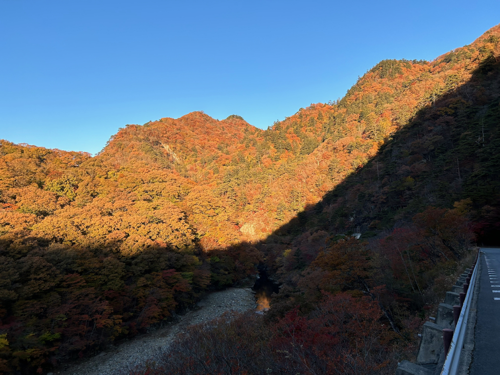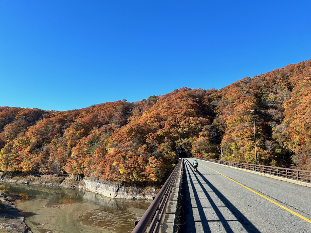 途中で去年のフレッシュの事故現場の現場検証です。右から鹿トレインが道路を斜めに交差して左に抜けていくところに、フレッシュトレインが通りがかって、運悪く自分に直撃したんだな。ホイールが前後ともダメになったので川治温泉まで走ってDNFした。