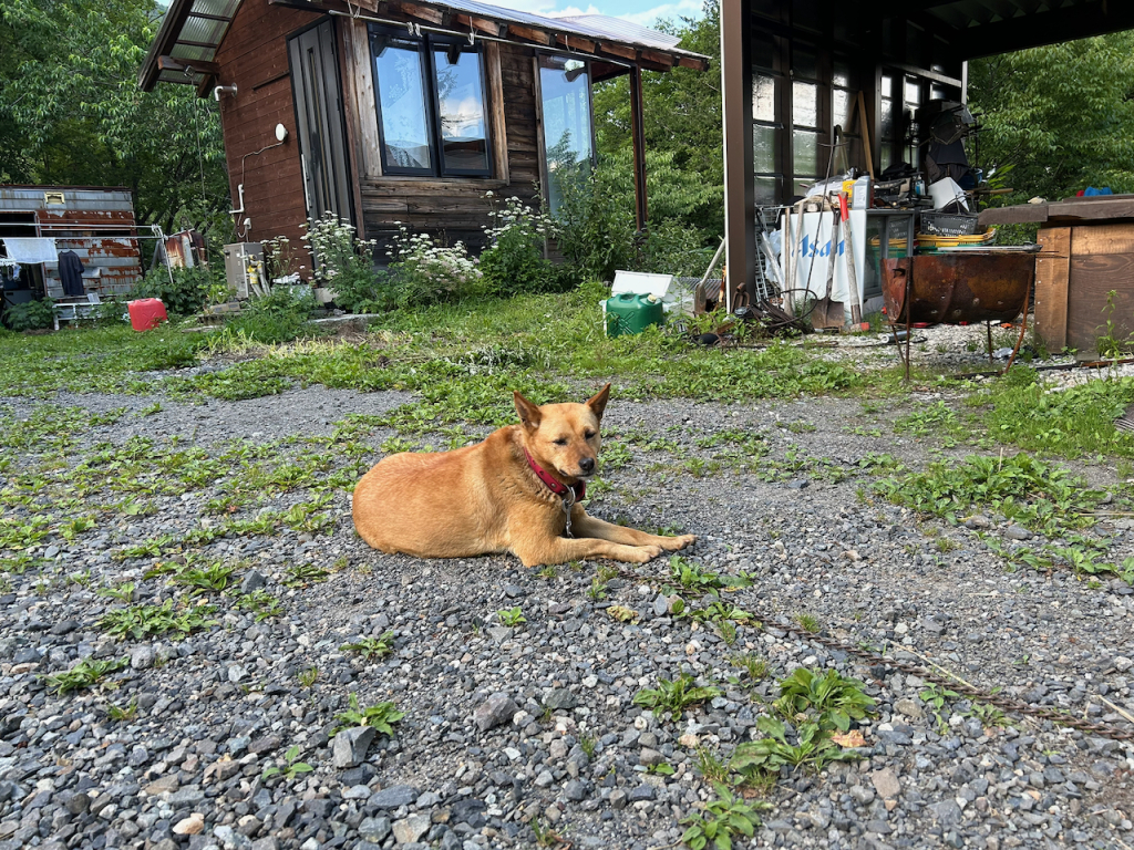 宿の外飼いのわんこ。熊にも立ち向かう勇敢な犬らしい。