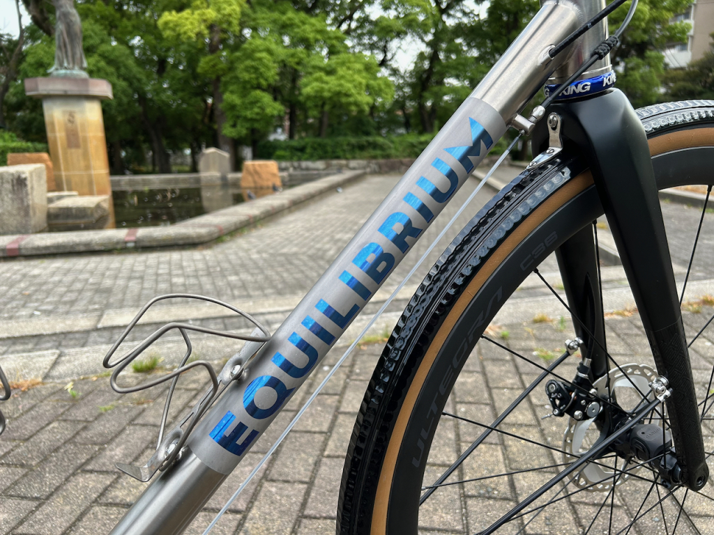 オーダー時にお願いしたのは、「ロングライドも行けるけど、グラベルにも気兼ねなく突っ込んでいけるようなオールロードバイクにしてほしい」ということ。そこでフレームはEquilibriumのロードバイクのE1ではなく、グラベルバイクのBrutalistをベースとすることになった。コンポ関連は機械式変速、機械式ディスクブレーキ。フルフェンダーを装備。タイヤのクリアランスは40cぐらいまでは入るとうれしいということをリクエストした。