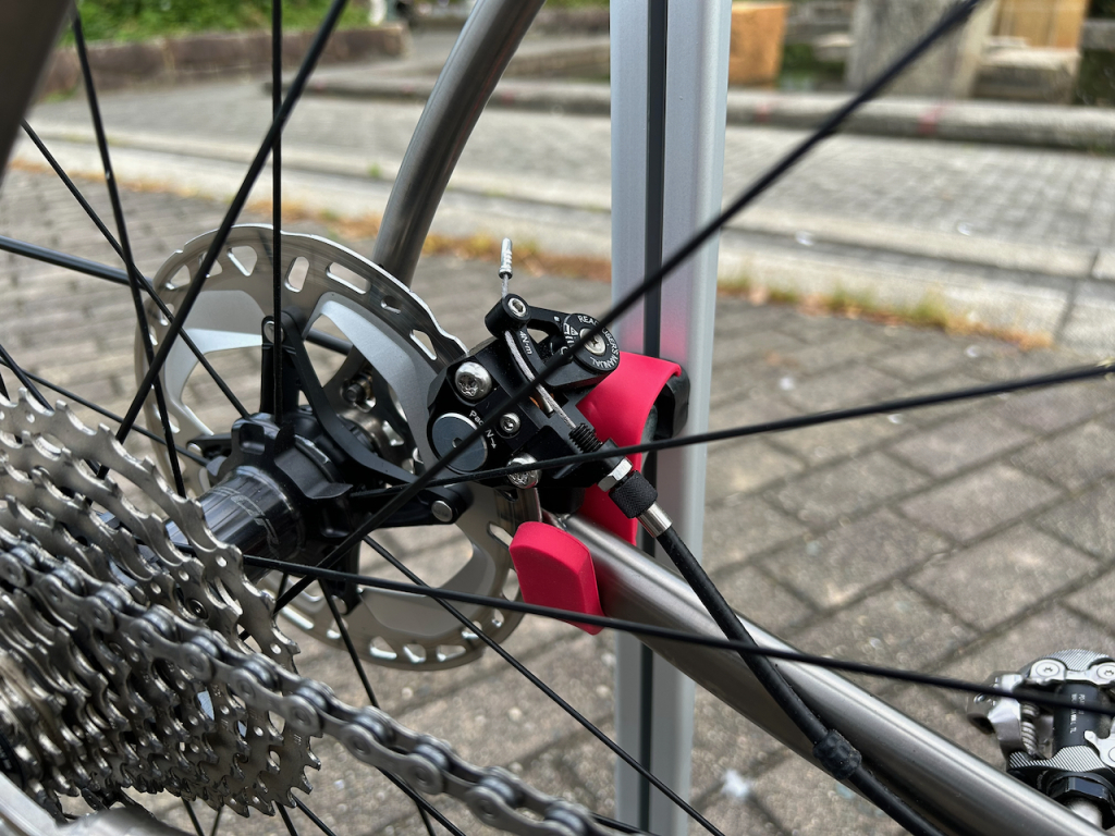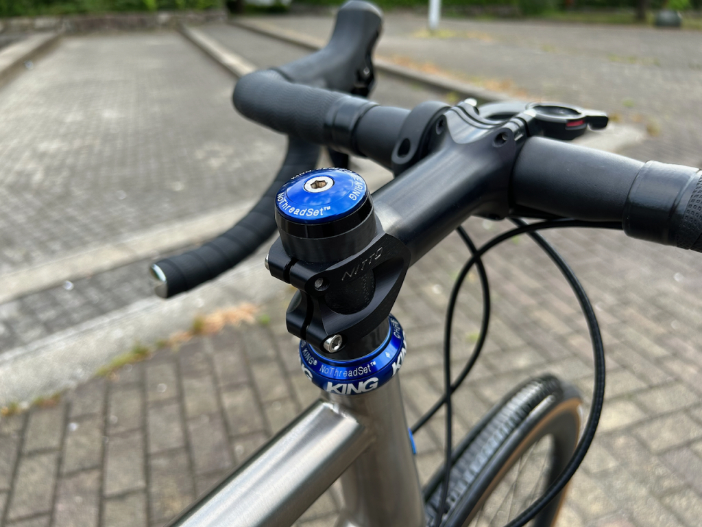 ダボ穴はダウンチューブの下に追加した。以前はパナチタンでもダウンチューブの下にボトルケージを増設していたけど、一度派手に破損したことがあってあれ以来全く使っていないが、念のためにダボ穴を付けてもらったという感じ。最近トップチューブにもトップチューブバッグ用のダボ穴を備えたモデルが多いけど、そもそもトップチューブバッグを使っていないし、必要になった時に後から増設すればいいよとのことで、とりあえず今はダウンチューブの下のみ。