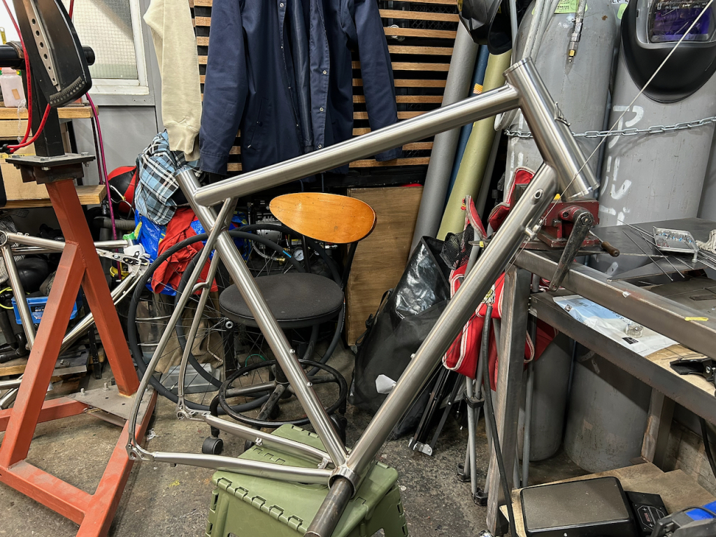 フレームの素の姿ができあがったそうなので、Equilibriumの工房へ出向いて仕上げのデザインの相談。パーツも持参したので、次はいよいよ納車となりそう。4月にはなんとかなるか。ワクワク。