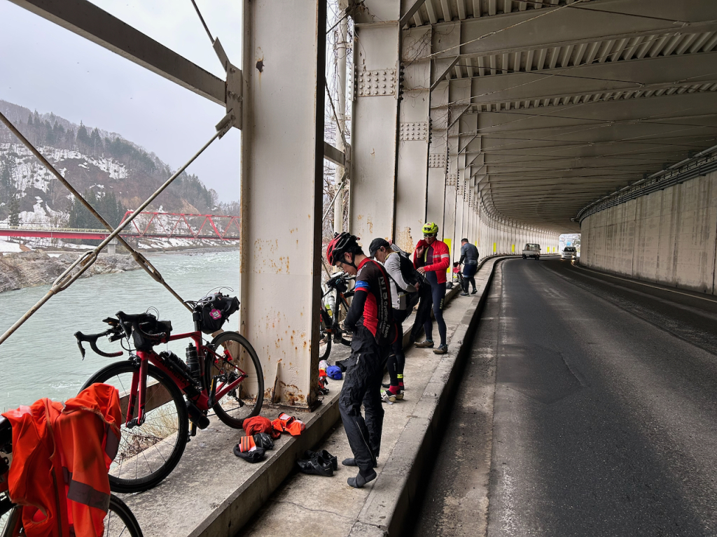 朝から雨。初日を大田までとしていたので、割と後ろの方になるであろうと思い、スタートも後ろの方でゆっくりめにスタートした。なんせ今回一緒に走るちぇさんはオホーツク以来のブルベである。緩めの計画で時間いっぱい使いたい。ドロップバッグなしなので毎日洗濯もしたい(ちぇさんは富山にドロップバッグを送って北よに備えた装備に入れ替えていたようだ)。あと、少なくとも昼飯はどこかでちゃんとした飯にしようというのも合意事項(自分はブルベ中の飯に全然こだわりがないのでコンビニ飯続きでも平気だけど、それはダメだというちぇさんからの強い要望でもある)なので、そこら辺もいくつか候補を決めてある。