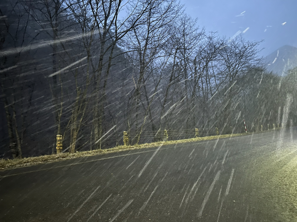 ちぇりーリサーチによる牛骨ラーメン屋で注文してしばし料理が出来上がるのを待っている間に何気なくSNSを見たら、兵庫県内の通行止めの話題が飛び交っていた。兵庫県は日本海側の海岸沿いを行くルートとなっているが、この1900kmにおいて一番アップダウンが多くきついところなので、通行止めで迂回せよというのであればこれ幸いと、海岸沿いを全カットするコースを探すことにした。兵庫県民ということもあってかつて車でうろうろしていたこともあるし、そこそこ土地勘はあるのであっさりルートは決まった。岩美から海岸沿いへ行かず、国道9号から神鍋高原を通って豊岡に出て、城崎へ向かうルートである(まぁ手前から迂回しようとするとこれぐらいしか選択肢はないと思う)。あと、「海岸沿いのルートは落石とかあって死にますんで注意してください」(この説明に対して笑いが起きる参加者もどうかしていると思う。ブルベ界、感覚が麻痺していないだろうか。いつかまた死人が出ると思う。)とブリーフィングで説明されていたが、そんなとこ通さんでくれよというのもあり、迂回するにあたって通る必要がないなら積極的にそういうところはカットしていきたいというのもある。
