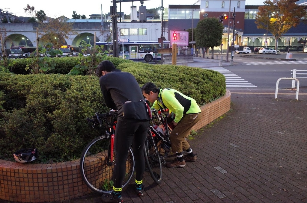 16時過ぎに武蔵五日市に到着したけど、この辺は山から下りてきたとはいえ随分寒い。もりとさんは久々の自転車ということもあり、ここから輪行で離脱。もりとさんが美味い酒を飲めていれば走行会は満点だ。また明日から駅のホームで仮眠する生活をがんばってほしい(ひどい)!ハチヤマさんは八王子に帰るので、自分は鈴木さんと一緒に川崎まで。