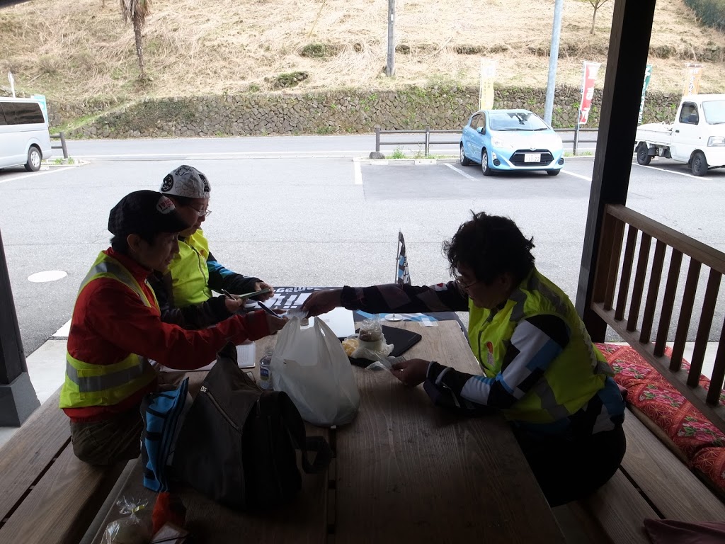 元六はルート上なので後続の参加者がどんどん通過していく。これはぜっとさんを乗せた黄色のしんやさんカーがシークレット業務へ向かうところ。御二方もお誘いしたが、先を急がねばならぬということであった。